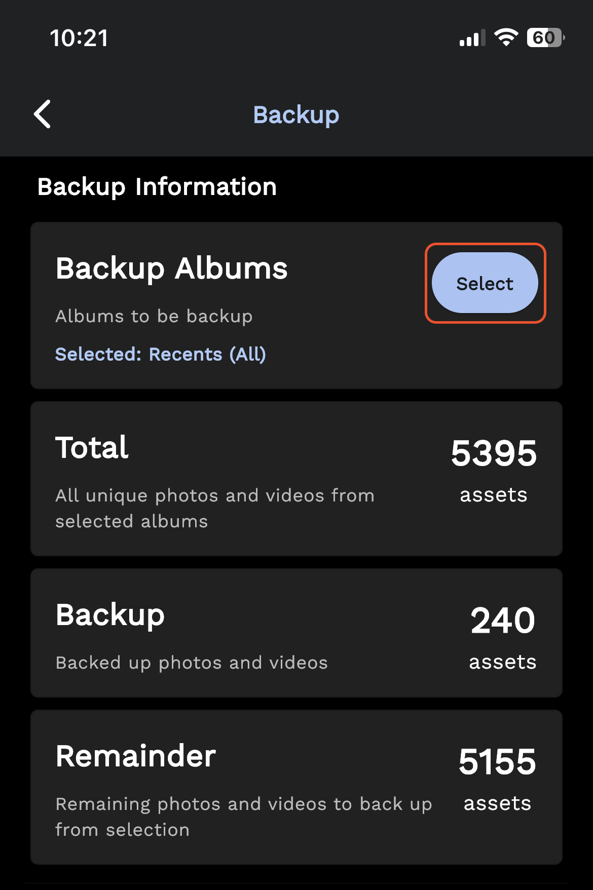 You can select which album(s) you want to back up to the Immich server from the backup screen.